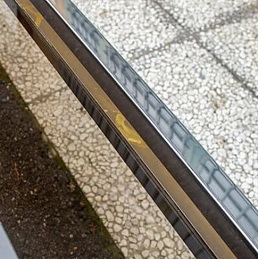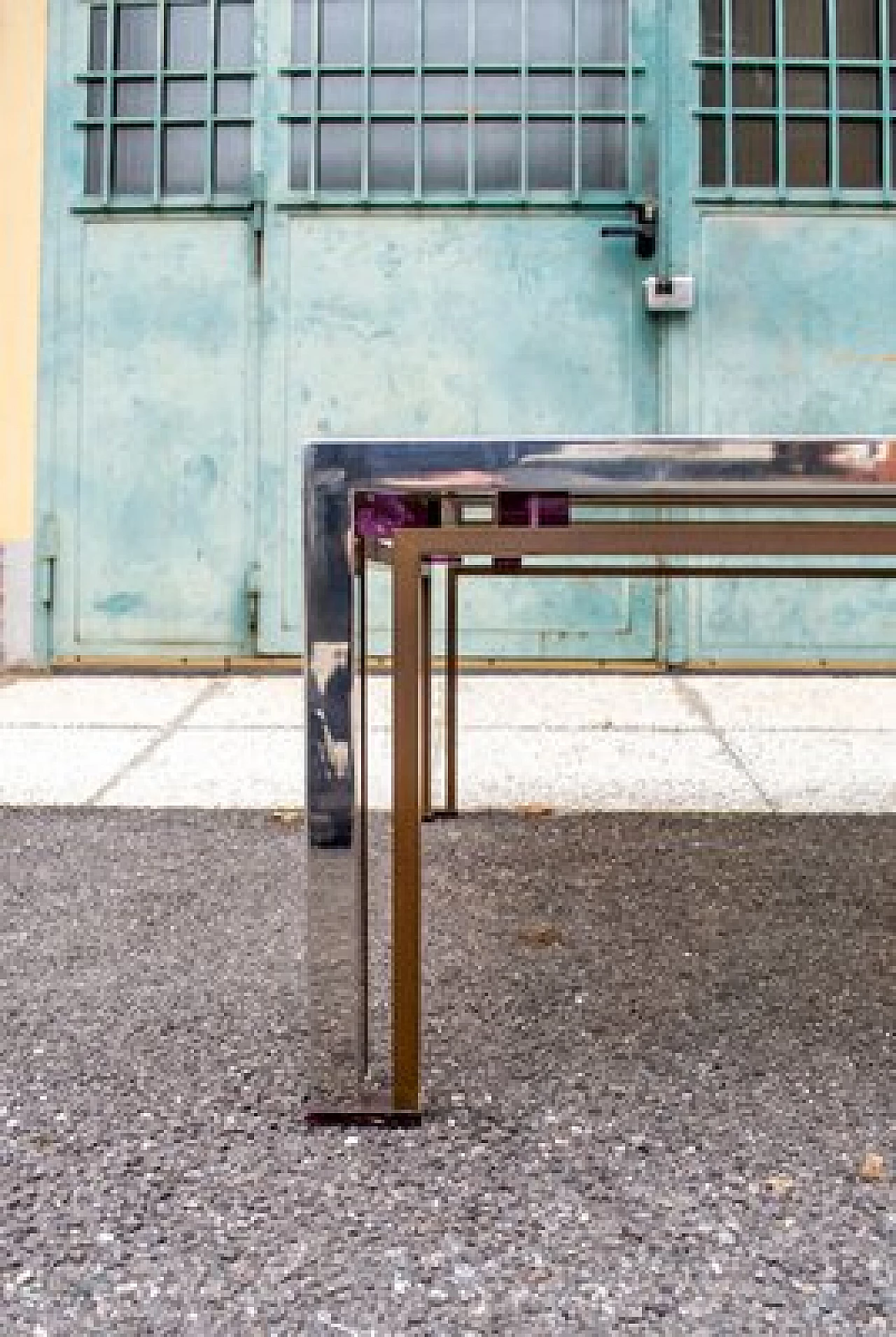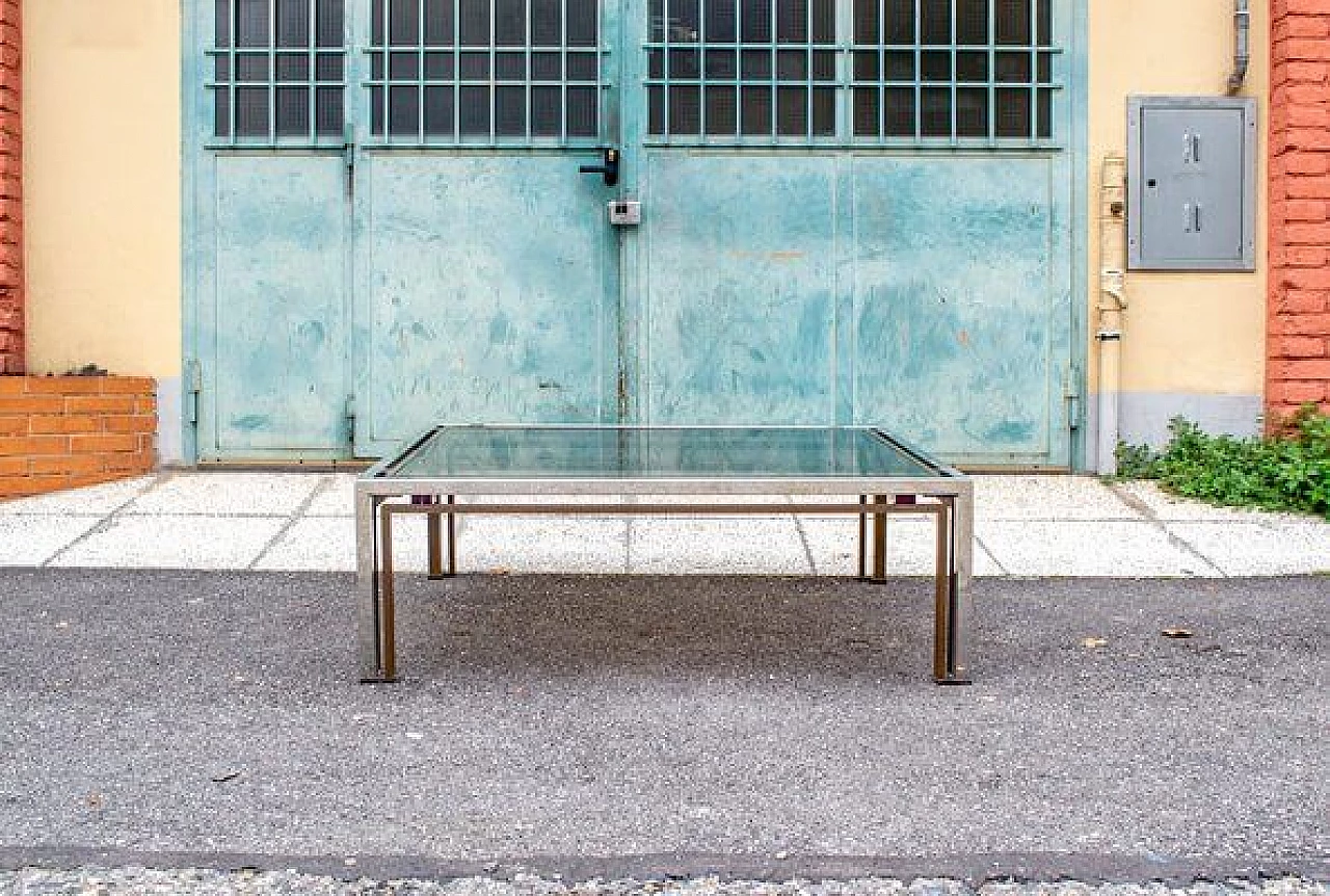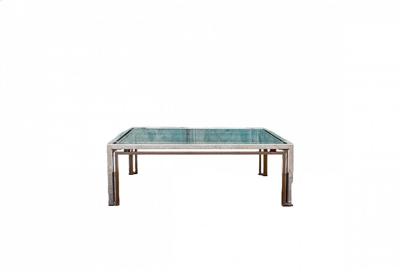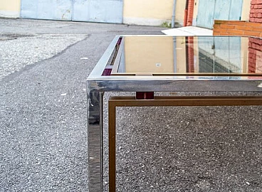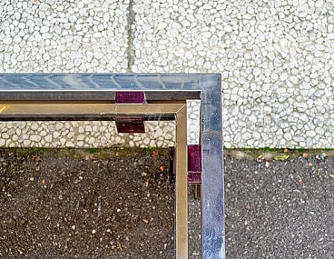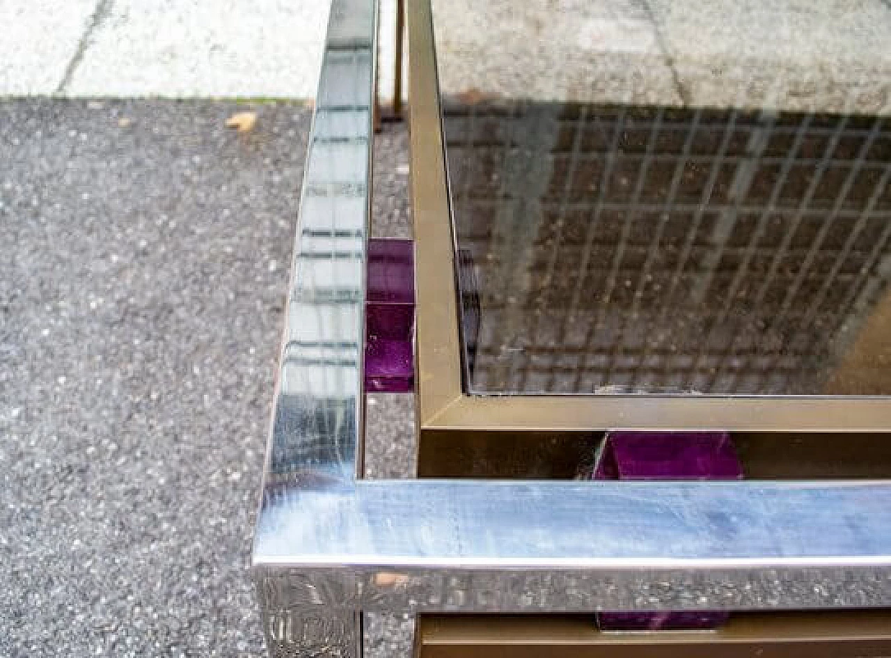 Tavolino da caffè in acciaio e ottone con decorazioni in vetro acrilico, anni '70