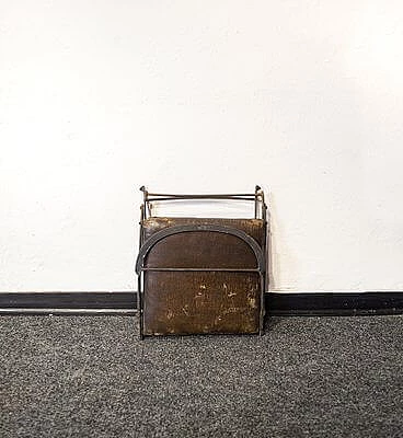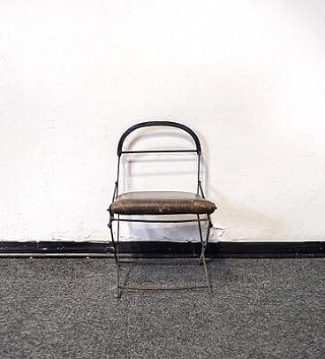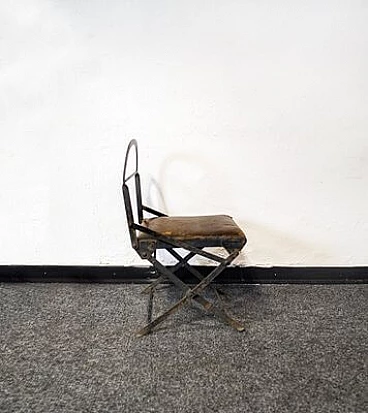Sedia pieghevole con struttura in metallo e rivestimento in pelle, inizio '900