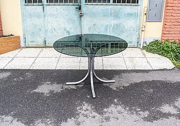 Tavolo rotondo in metallo cromato e vetro di Giotto Stoppino, anni '60