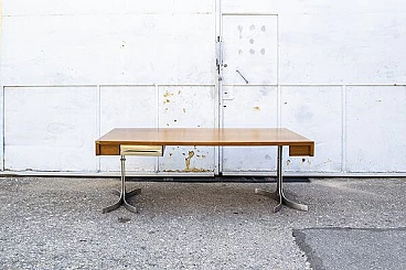 Scrivania in alluminio e legno con cassetto di Trau, anni '60