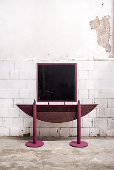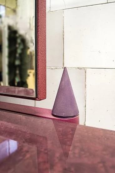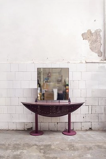 Consolle in radica di betulla con specchio di Saporiti, anni '80