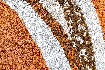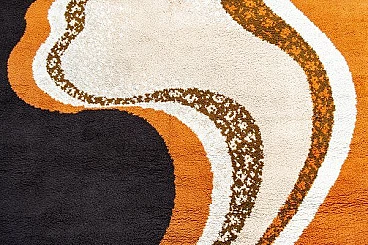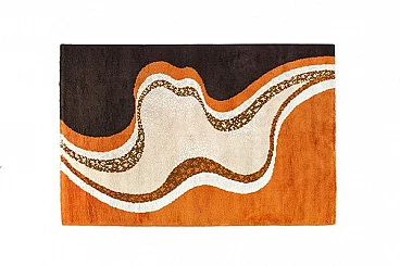 Tappeto psichedelico arancione e marrone in lana, anni '70