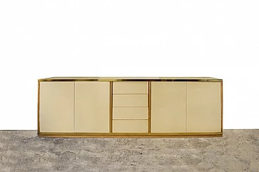 Credenza in legno laccato e ottone con cassetti, anni '70