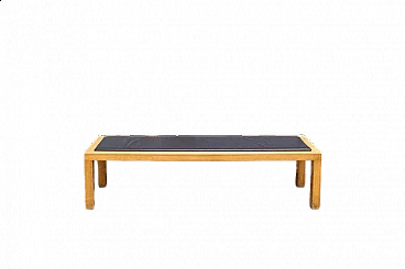 Panca in legno e seduta imbottita in pelle di Salmistraro, anni '80