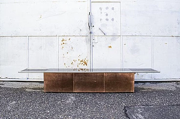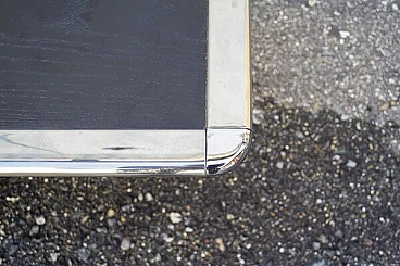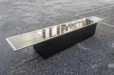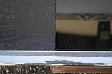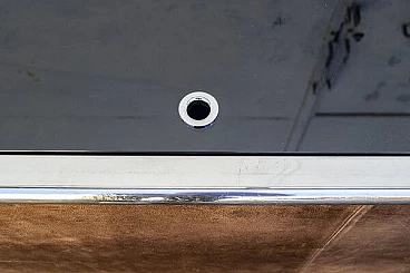 Credenza bassa in pelle scamosciata, vetro, legno e metallo cromato, anni '70