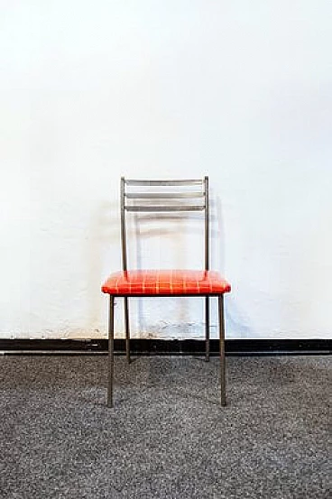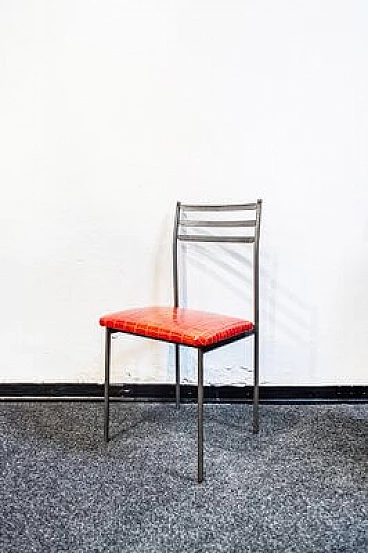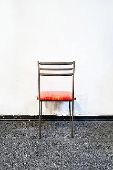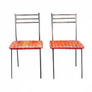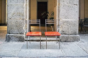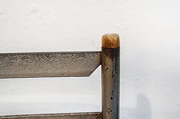 Coppia di sedie in ferro con tacchetti in legno e seduta in pelle, anni '60