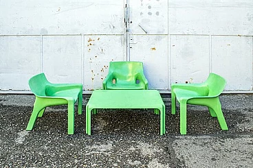 3 Sedie Vicar e un tavolino Arcadia di Vico Magistretti per Artemide, anni '70