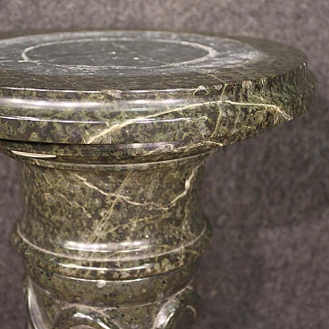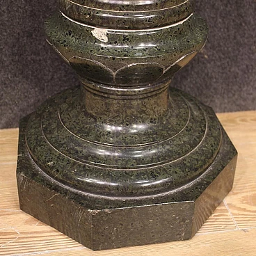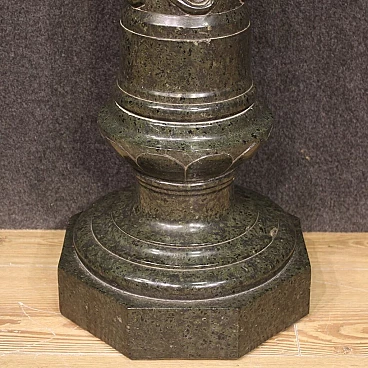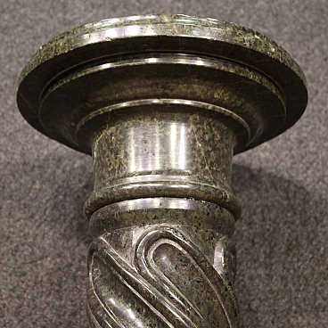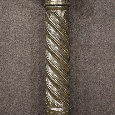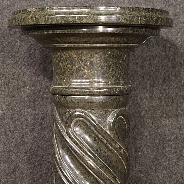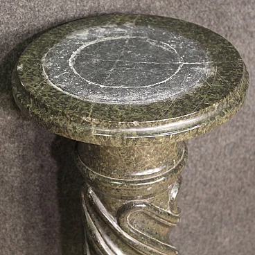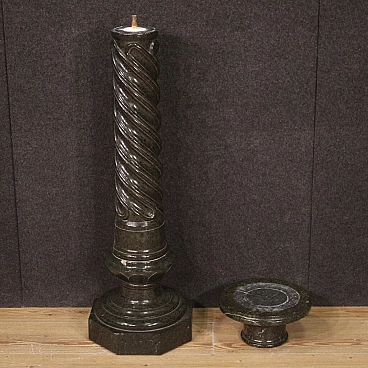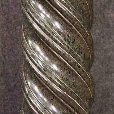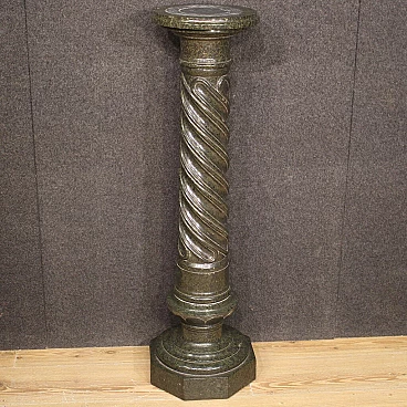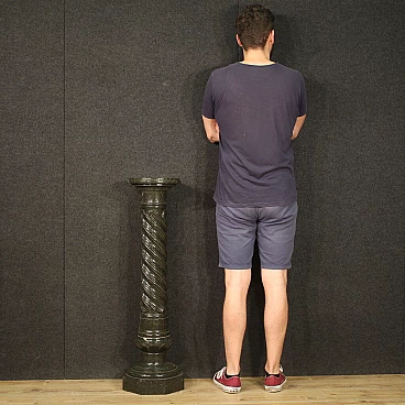 Colonna italiana della metà del XX secolo. Oggetto scolpito in marmo, in bellissima patina, composto da due elementi separabili (vedi foto). Colonna di bella misura e piacevole arredamento, ideale per esporre sculture, oggetti o vasi. Oggetto finemente scolpito con colonna tortile centrale poggiante su basamento ottagonale. Colonna facilmente inseribile in diversi punti della casa, per antiquari e arredatori. Strutturalmente sana, presenta piccole sbeccature e segni di usura sul piano, nel complesso in buono stato conservativo.
