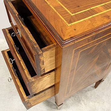 Cassettiera Luigi XVI bolognese in noce intarsiato, '700