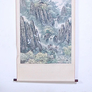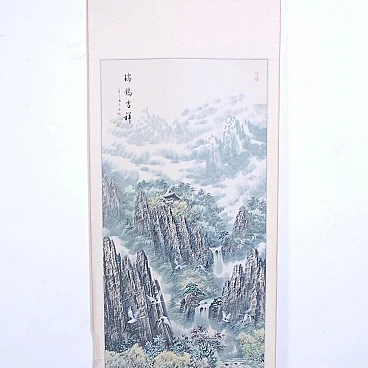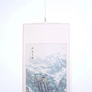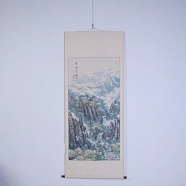 Kakejiku giapponese, dipinto su carta raffigurante un panorama montano, metà '900