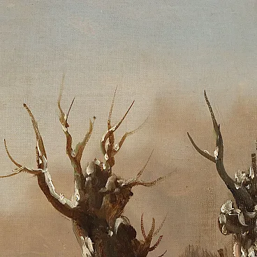 Paesaggio invernale con figure, dipinto a olio su tela, inizio '800