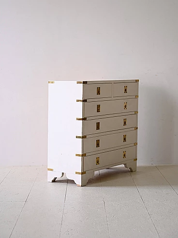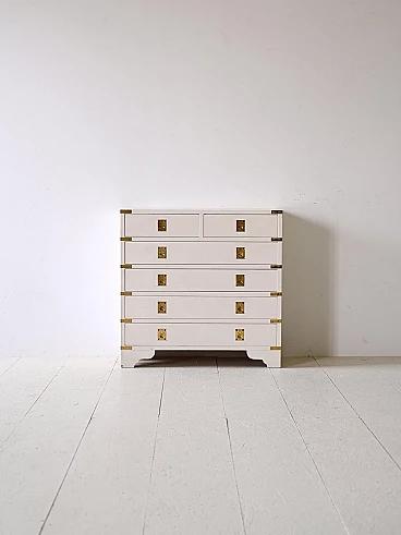 Cassettiera a sei cassetti in legno dipinto bianco, anni '60