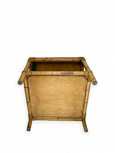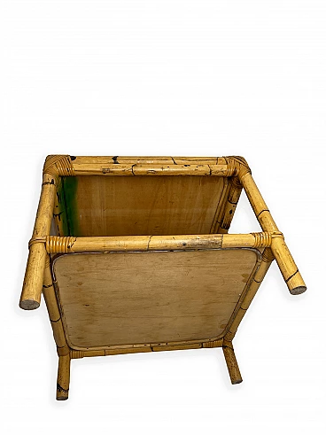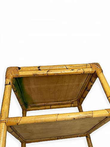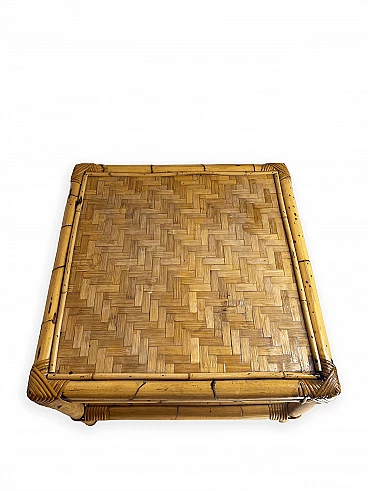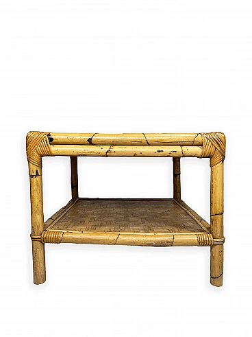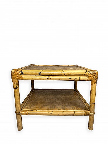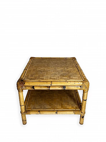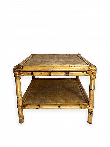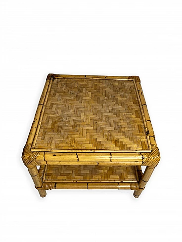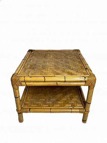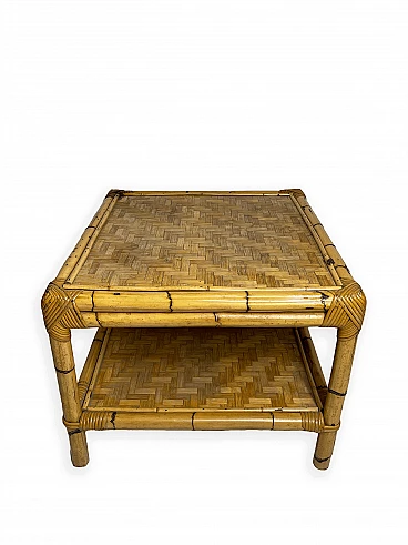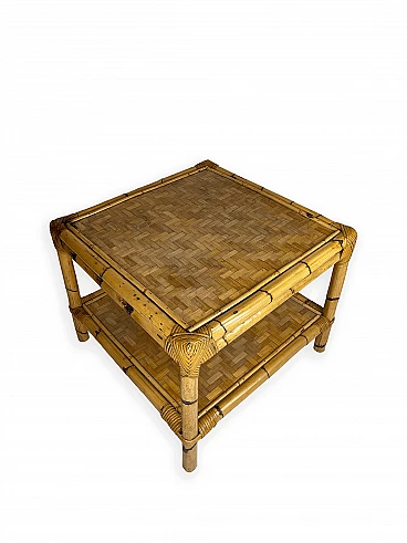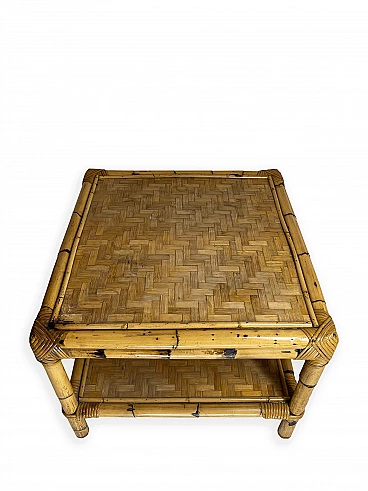 Tavolino quadrato in bambù con doppio ripiano, anni '60