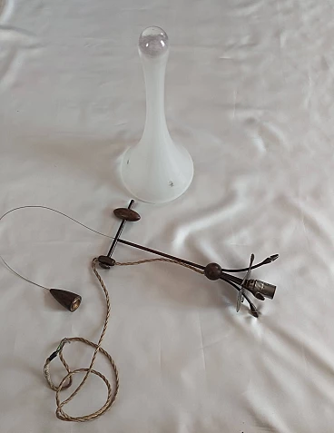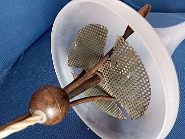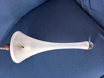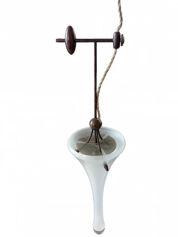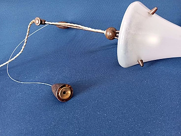 Lampada a sospensione in vetro di Murano bianco, legno e bronzo, anni '60