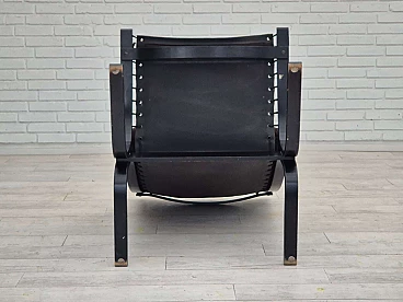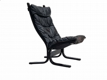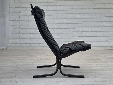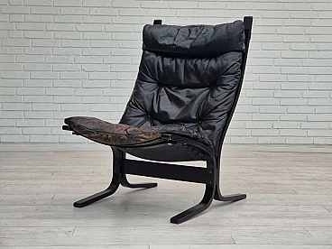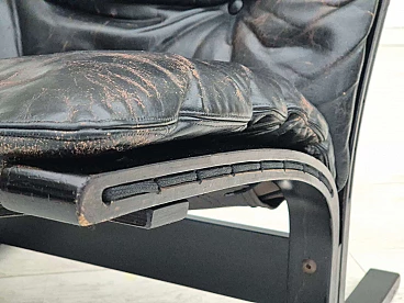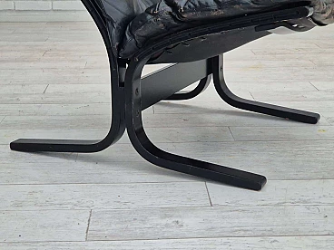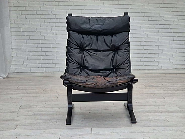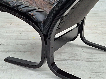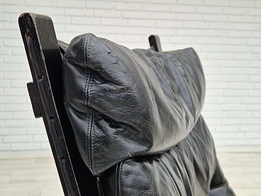 Poltrona norvegese Siesta in pelle nera e legno curvato di Ingmar Relling, anni '70
