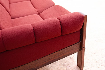 Divano stile scandinavo in faggio e tessuto rosso, anni '70