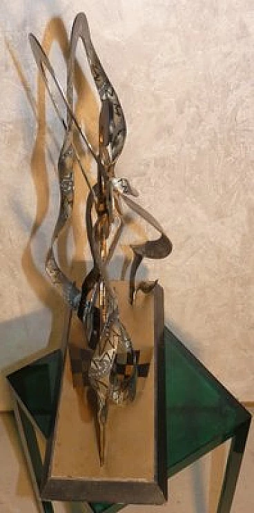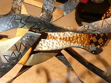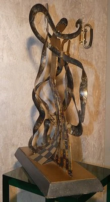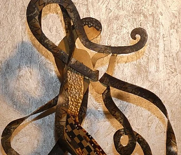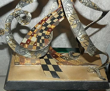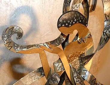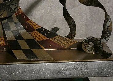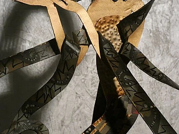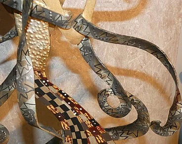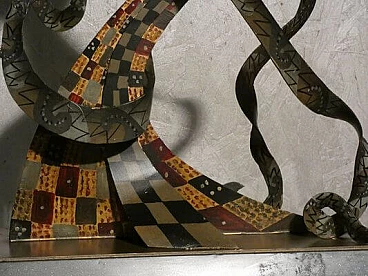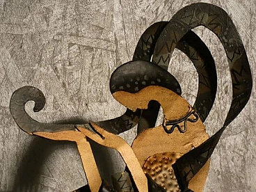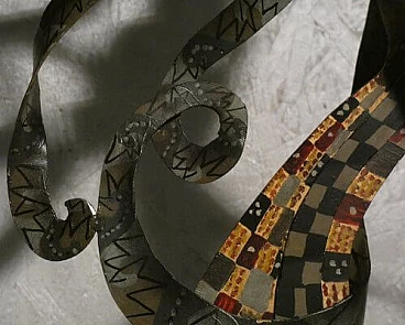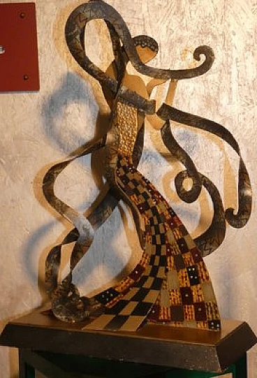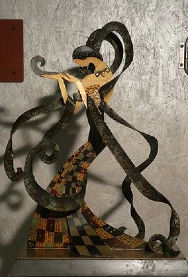 Scultura Art Déco in ferro battuto e smalto raffigurante Salomè che danza per Erode, realizzata da un artista austriaco a inizio '900. Elegantissima scultura raffigurante Salomè nella danza dei sette veli su cromie di Klimt. La scultura è tridimensionale, dipinta e rifinita su ambo i lati, quindi collocabile ovunque poiché non esiste un lato frontale e uno posteriore. La scultura poggia su una base in legno.