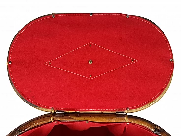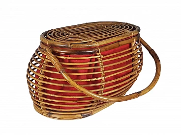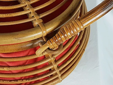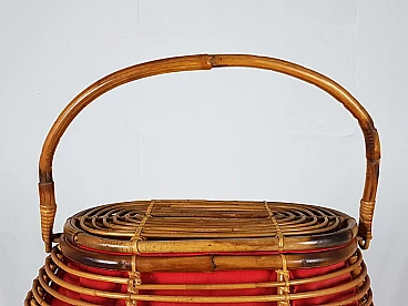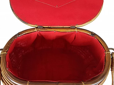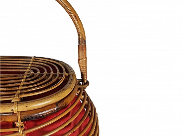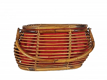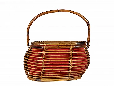 Cestino in rattan e tessuto rosso, anni '60