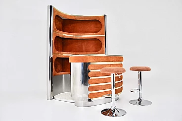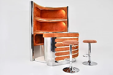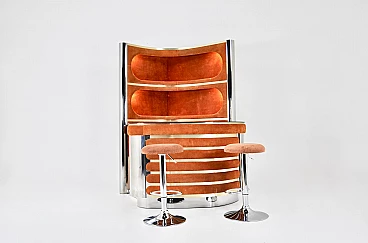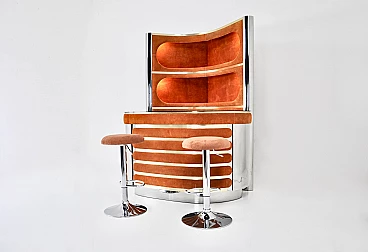 Mobile da bar con coppia di sgabelli di Willy Rizzo, anni '70