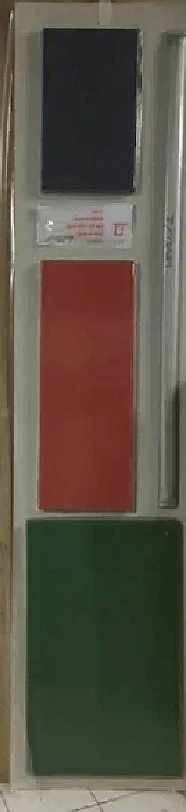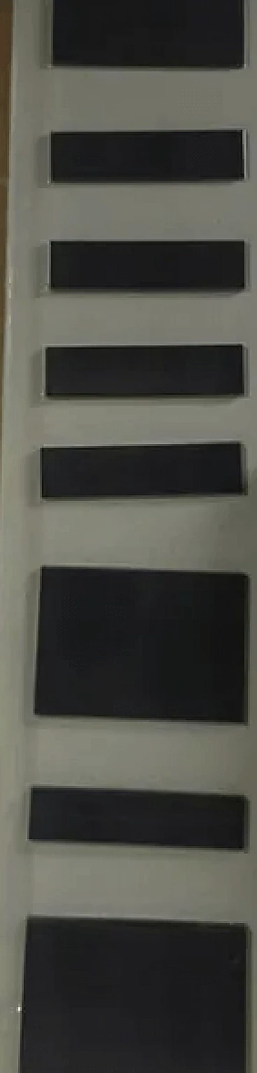 Libreria Level 733/2 di Arik Levy per Zanotta. Questa libreria, evocatrice di geometrie alla Mondrian, si presenta come un'ordinata trama organizzata sull'intersezione di piani verticali e orizzontali, che formano spazi rettangolari di diversa dimensione. La rigorosa geometria è ravvivata da tocchi colorati, contenitori scatolari da inserire negli appositi vani con schienali; uno di colore verde, uno grigio e uno arancione, variamente posizionabili. Leggera e resistente, la struttura è in medium density fiberboard (spessore: 12 mm) placcato alluminio e impiallacciato, disponibile in rovere tinto wengé. Grazie alla configurazione aperta sui lati, la libreria Level può essere posizionata sia in verticale che in orizzontale.