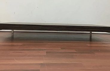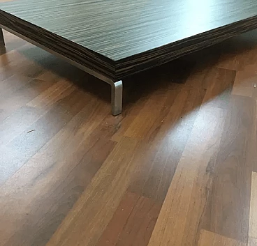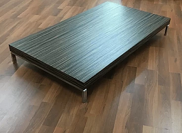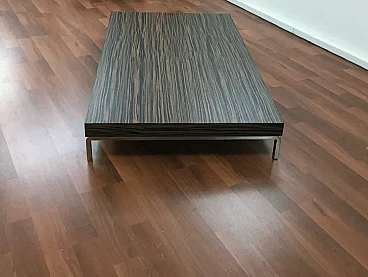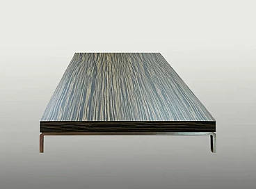 Tavolino Greggy 686 di Emaf Progetti per Zanotta, progettato nel 1999. Piedini in lega di alluminio lucidato e piano in legno tamburato impiallacciato in tranciato precomposto, colore ebano opaco. Emaf Progetti è stata fondata nel 1982 da Aurelio Zanotta; i suoi successori hanno sviluppato l'attività dal 1991. Lo studio si occupa principalmente di attività di design, arredamento d'interni, installazioni, immagini e sviluppo del prodotto, grafica e comunicazione per aziende di arredamento. I suoi prodotti sono stati premiati a livello internazionale e sono attualmente di proprietà di diversi musei.