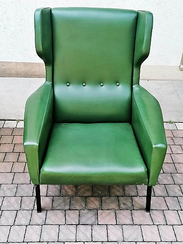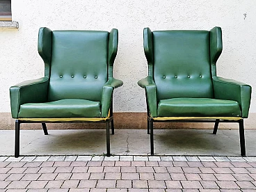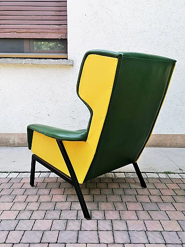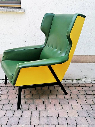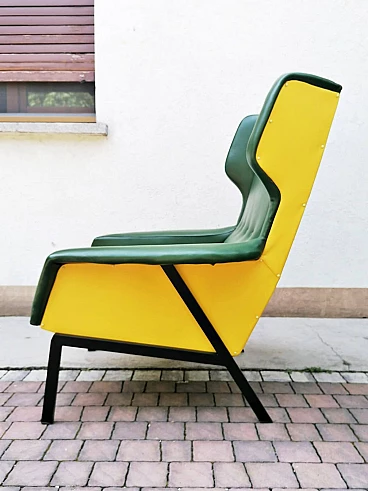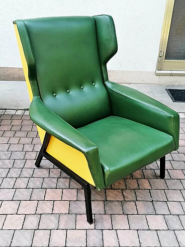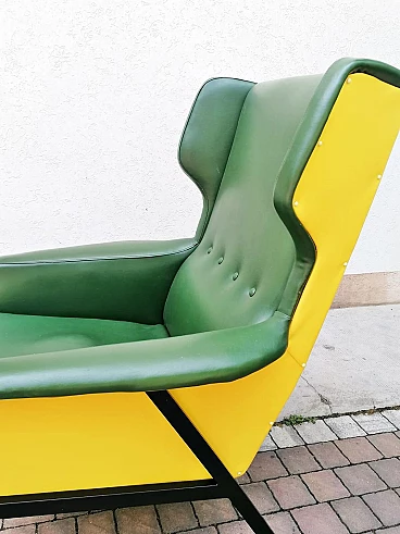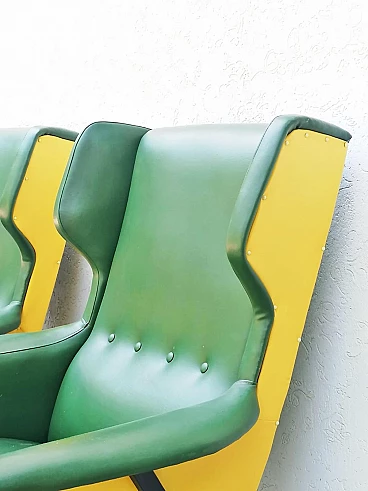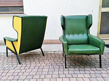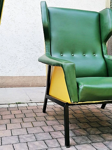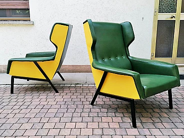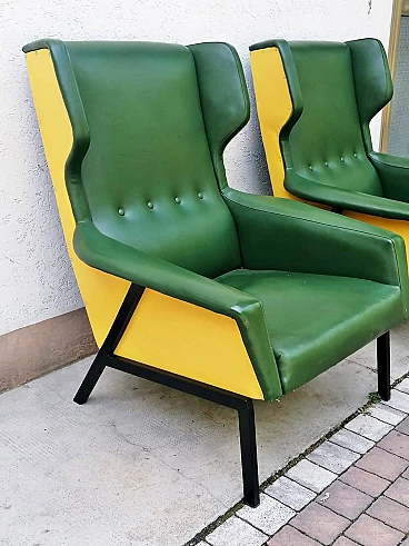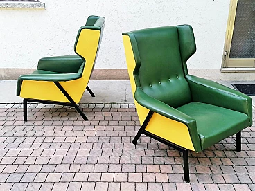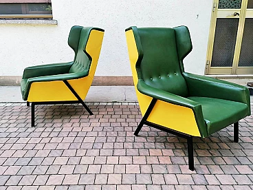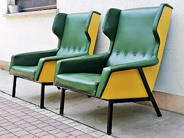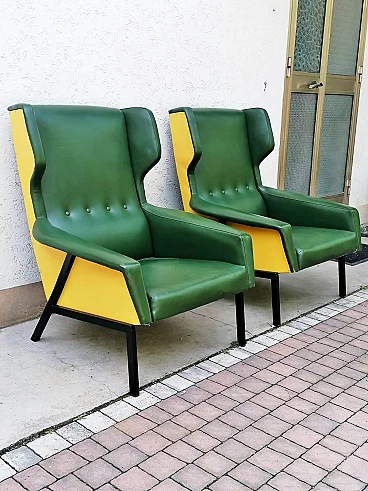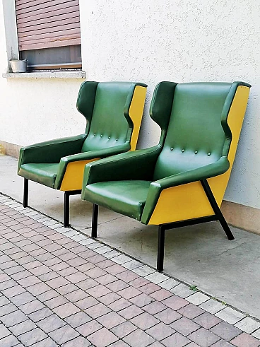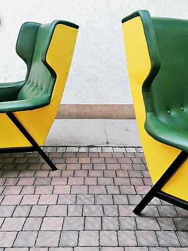 Coppia di poltrone in skai verde e giallo, anni '60