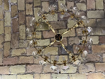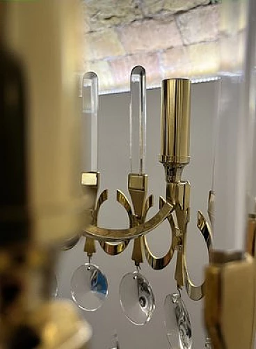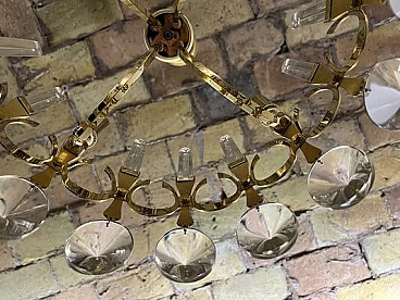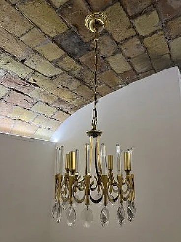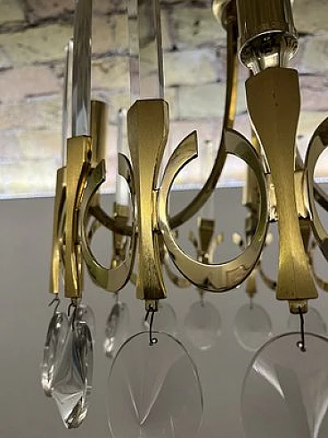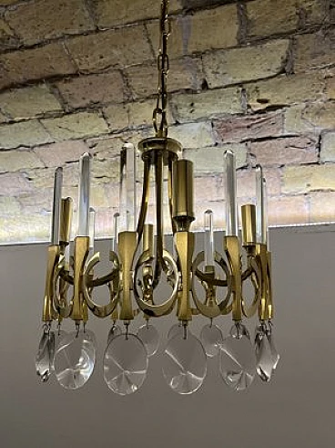 Lampadario in vetro, bronzo e ottone di Gaetano Sciolari, anni '70