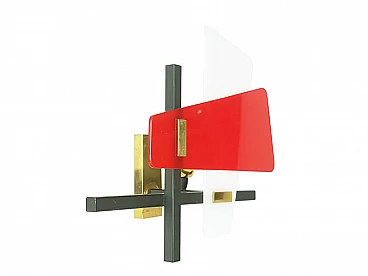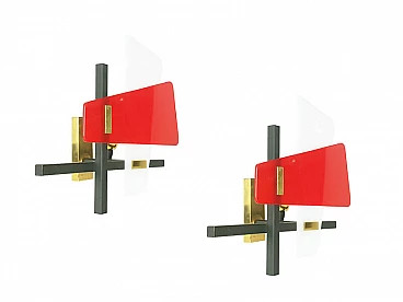 Coppia di lampade da parete in metallo, ottone e vetro acrilico di Stilux, anni '60