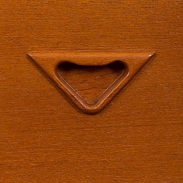 Il pensile mostra la maestria del design scandinavo, visibile nei dettagli come le maniglie decorative scolpite a triangolo. Gli scaffali e la vetrinetta possono essere disposti a piacimento. Possono essere posizionati in modo completamente diverso.