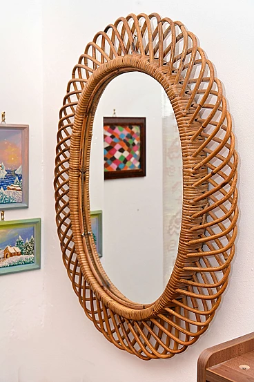 Specchio da parete ovale in bambù di Franco Albini, anni '70