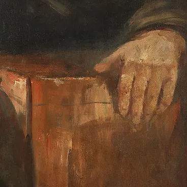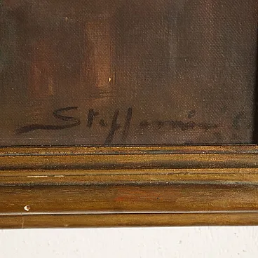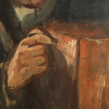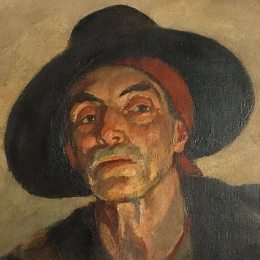 Dipinto a olio su tela di Ottavio Steffenini (1889-1971) raffigurante un suonatore di organetto, anni '30. Firmato in basso a destra. Traccia di una data, non leggibile. L'artista cuneese Ottavio Steffenini ebbe una vita in continuo movimento, divisa fra l'Italia, l'Europa e l'America, in particolare il Venezuela. Artista inquieto e imprevedibile, concentrò la sua pittura soprattutto sulle figure femminili, ritratte con placida sensualità e un'opulenza influenzata dai maestri spagnoli con cui studiò. Ma nella sua produzione non mancano altri soggetti, accomunati da un'incessante esaltazione della vita, della natura. Qui è proposta invece una figura maschile, un ritratto a mezzo busto di un suonatore di organetto, dignitoso e fiero nella posa e nello sguardo. L'opera è presentata in cornice in stile. Misure senza cornice: 82 x 72 cm.