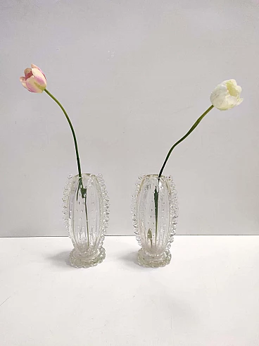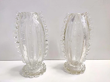 Coppia di vasi in vetro di Murano Bullicante trasparente di Ercole Barovier, anni '30