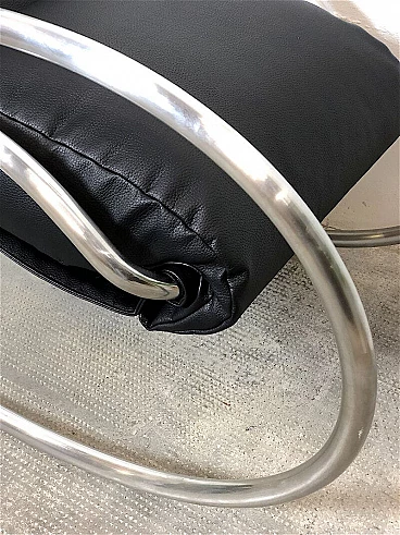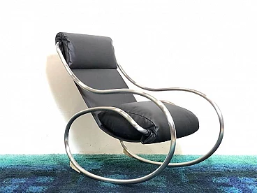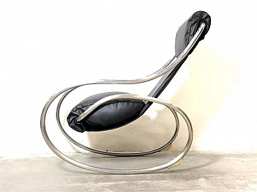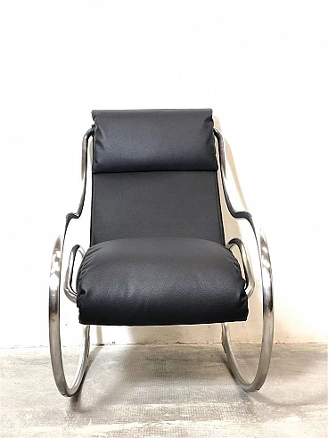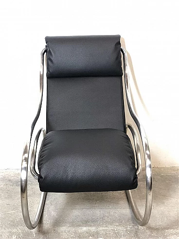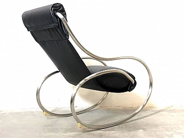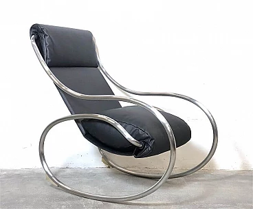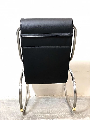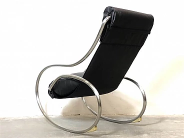 Poltrona a dondolo in ecopelle e acciaio By Heals, anni '70