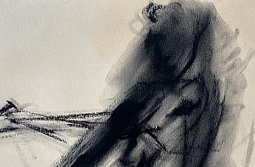 Nino Aimone, donna distesa, disegno a carboncino su carta, 1962