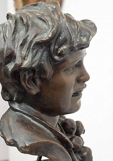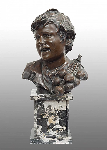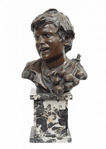 Scultura in bronzo patinato raffigurante busto di scugnizzo firmata "Vincenzo Cinque". La scultura in bronzo fuso a cera persa poggia su base in marmo rettangolare firmata sul retro Cinque Vincenzo (Napoli, 1852 - Napoli, 1929). Scultore napoletano studiò all'Accademia di Belle Arti di Napoli. Di classico impianto e sempre vicino al realismo, produce molti soggetti popolari in bronzo. Ottimo stato. Provenienza Napoli, fine XIX secolo. Misure: 30x25 cm, H 60 cm. Certificato di Autenticità. Siamo a vostra disposizione per ulteriori chiarimenti o particolari fotografici. Spedizione in tutta Italia, Europa e resto del mondo a prezzi molto contenuti in massima sicurezza e tracciabilità. La spedizione sarà concordata privatamente.
