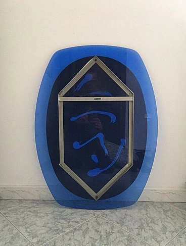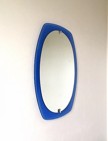 Specchio con cornice in vetro blu di Veca, anni '60