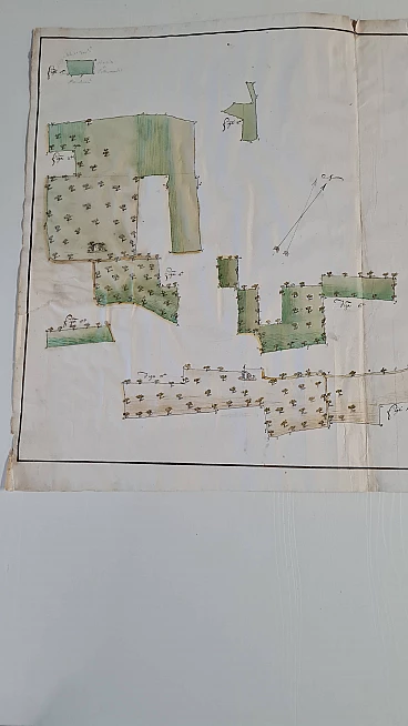 Mappa catastale su carta vergellata e filigranata, seconda metà del '700