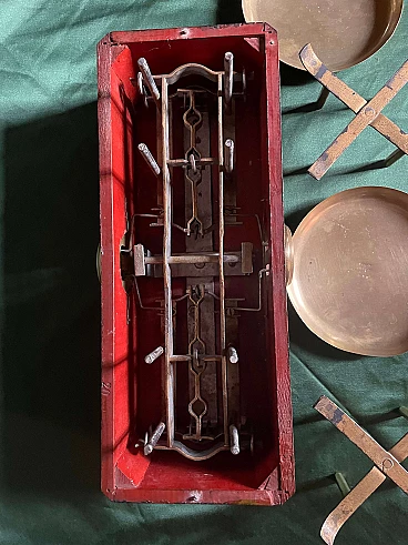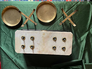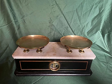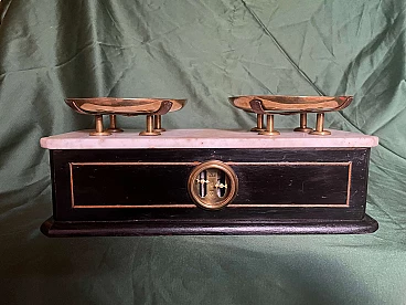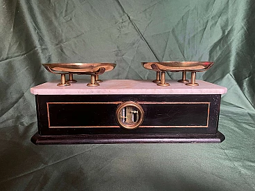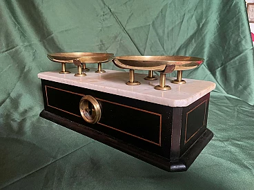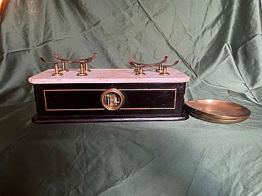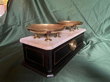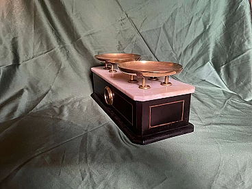 Bilancia a due piatti in ottone, legno e marmo, anni '20