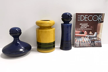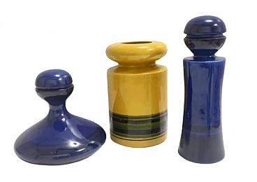 Coppia di bottiglie e vaso in ceramica smaltata di Parravicini, anni '70
