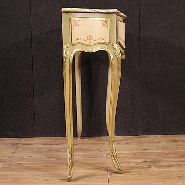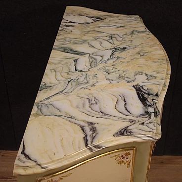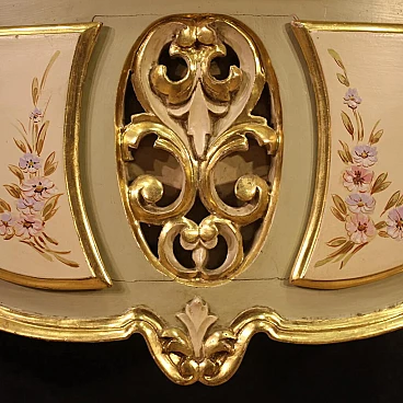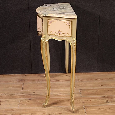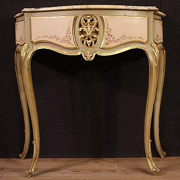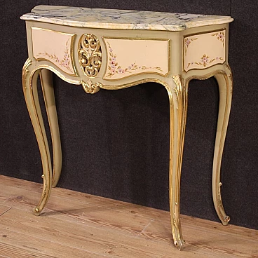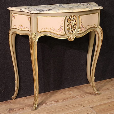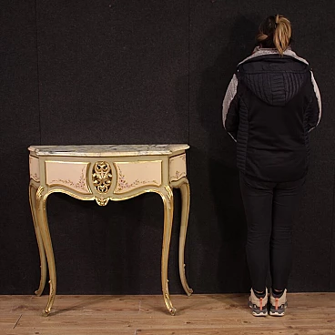 Consolle in legno laccato, dorato e dipinto con piano in marmo, anni '60