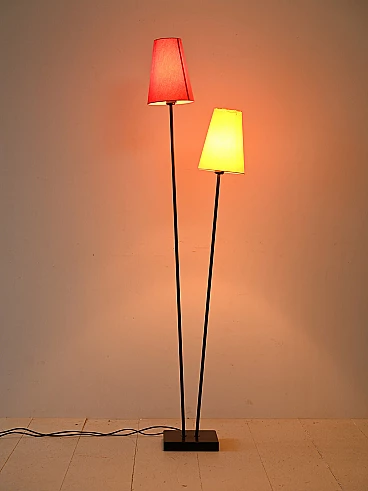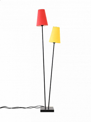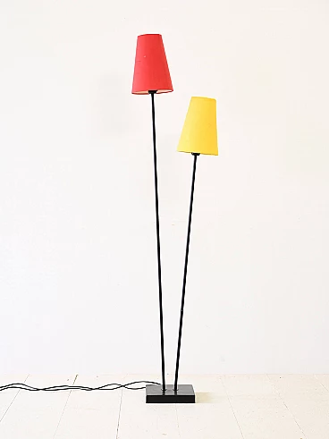 Lampada nordica con doppio paralume. Questa affascinante lampada vintage si distingue per la sua struttura in metallo nero, che aggiunge un tocco moderno al suo design nordico. I due paralumi in tessuto, uno rosso e l'altro giallo, conferiscono un accento vivace e colorato, creando un contrasto piacevole con la base. Il design semplice ed elegante della lampada la rende adatta a diverse stanze, dall'ingresso alla sala da pranzo, donando un tocco retrò e contemporaneo allo stesso tempo. Buone condizioni, è stato effettuato un restauro conservativo con prodotti di origine naturale. Potrebbe presentare dei segni del tempo. Per piacere presta attenzione alle fotografie.