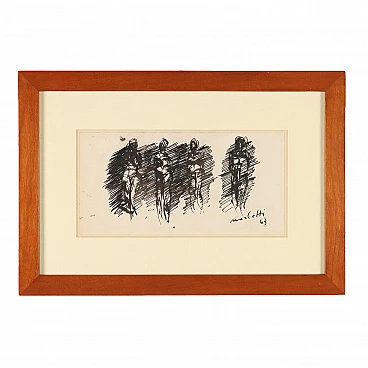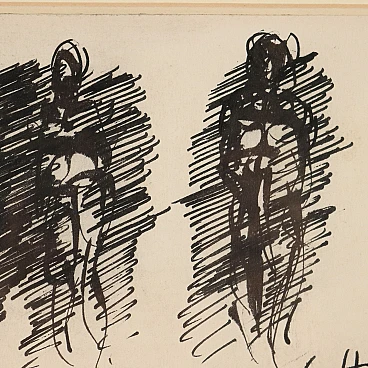 Ennio Morlotti, nudi, disegno a china su carta, 1963