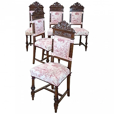 5 Sedie antiche stile rinascimento in noce, '800