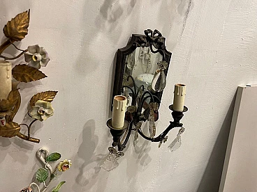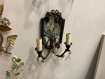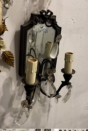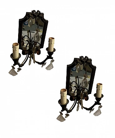 Coppia di applique in bronzo con specchio, anni '40