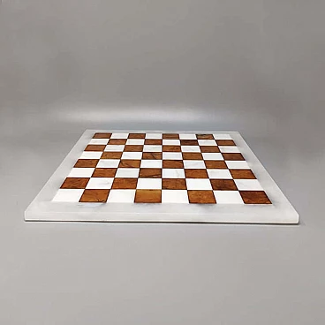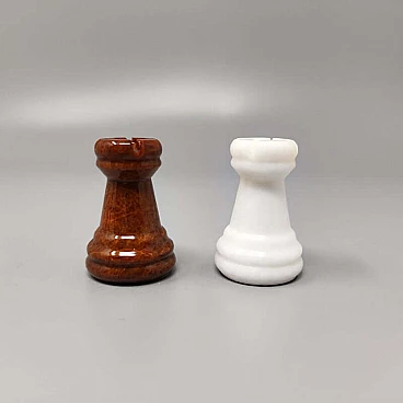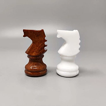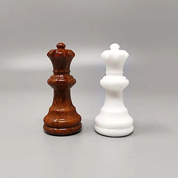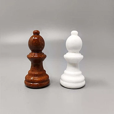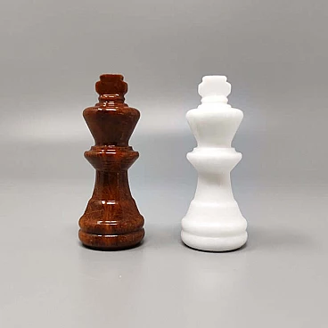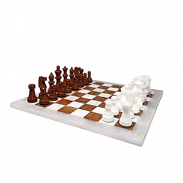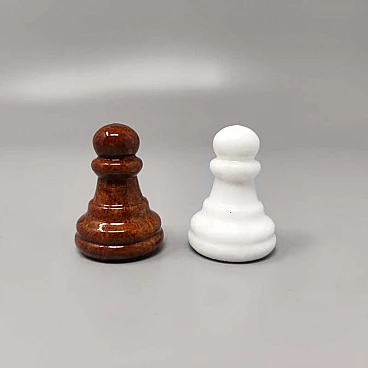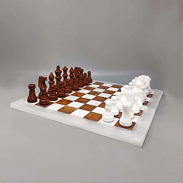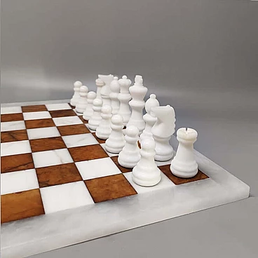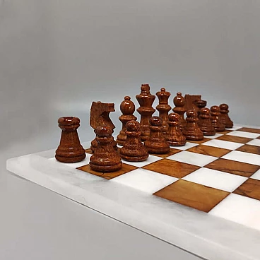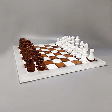 Scacchiera e scacchi in alabastro di Volterra marrone e bianco, anni '70