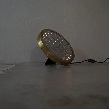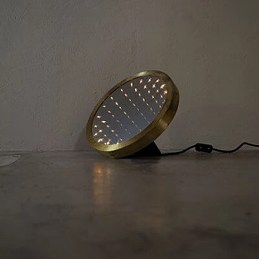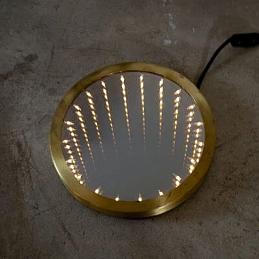 Specchio infinito luminoso con cornice in ottone, anni '70
