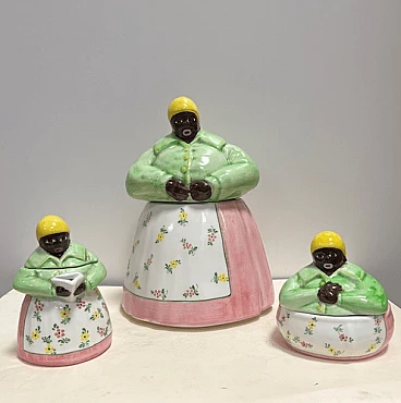 3 Porcellane ESTE serie Mammy, biscottiera, zuccheriera e lattiera, tardo '900