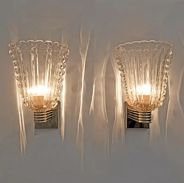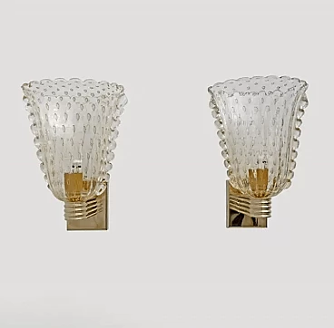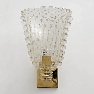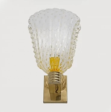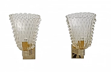 Coppia di applique in ottone e vetro di Murano Pulegoso di Barovier & Toso, metà '900