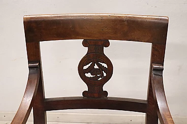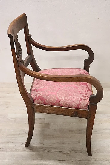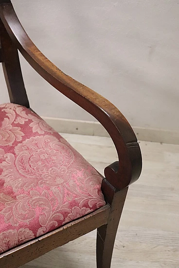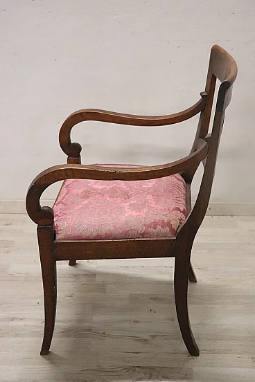 Poltrona Direttorio in noce massello e tessuto damascato, fine '700