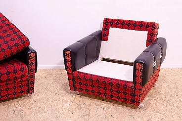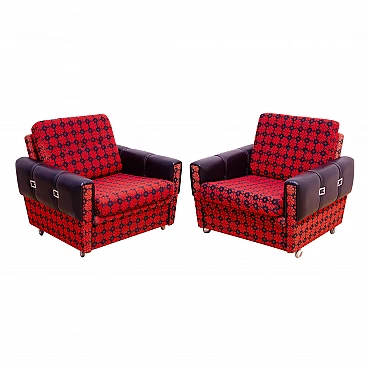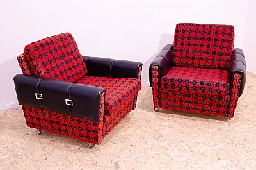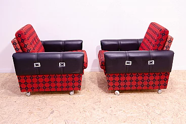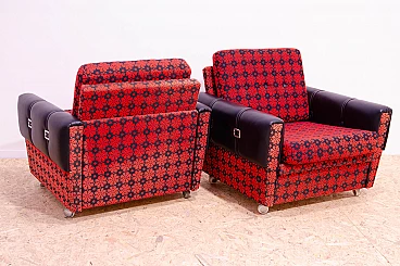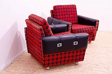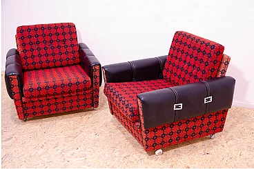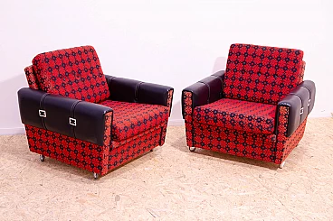Coppia di poltrone cecoslovacche in similpelle e tessuto, anni '70
